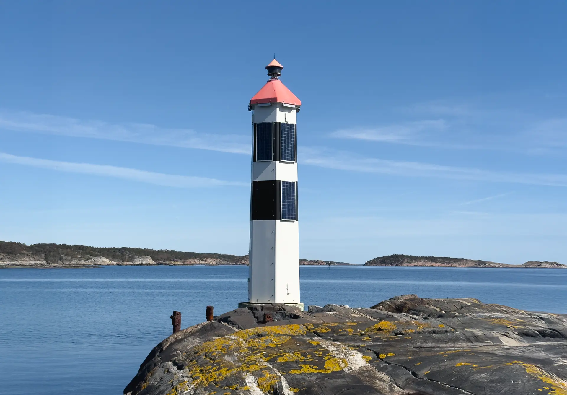 Rød - indikerer babord kant (venstre) til kanalen for fartøy som nærmer seg lyskilden
