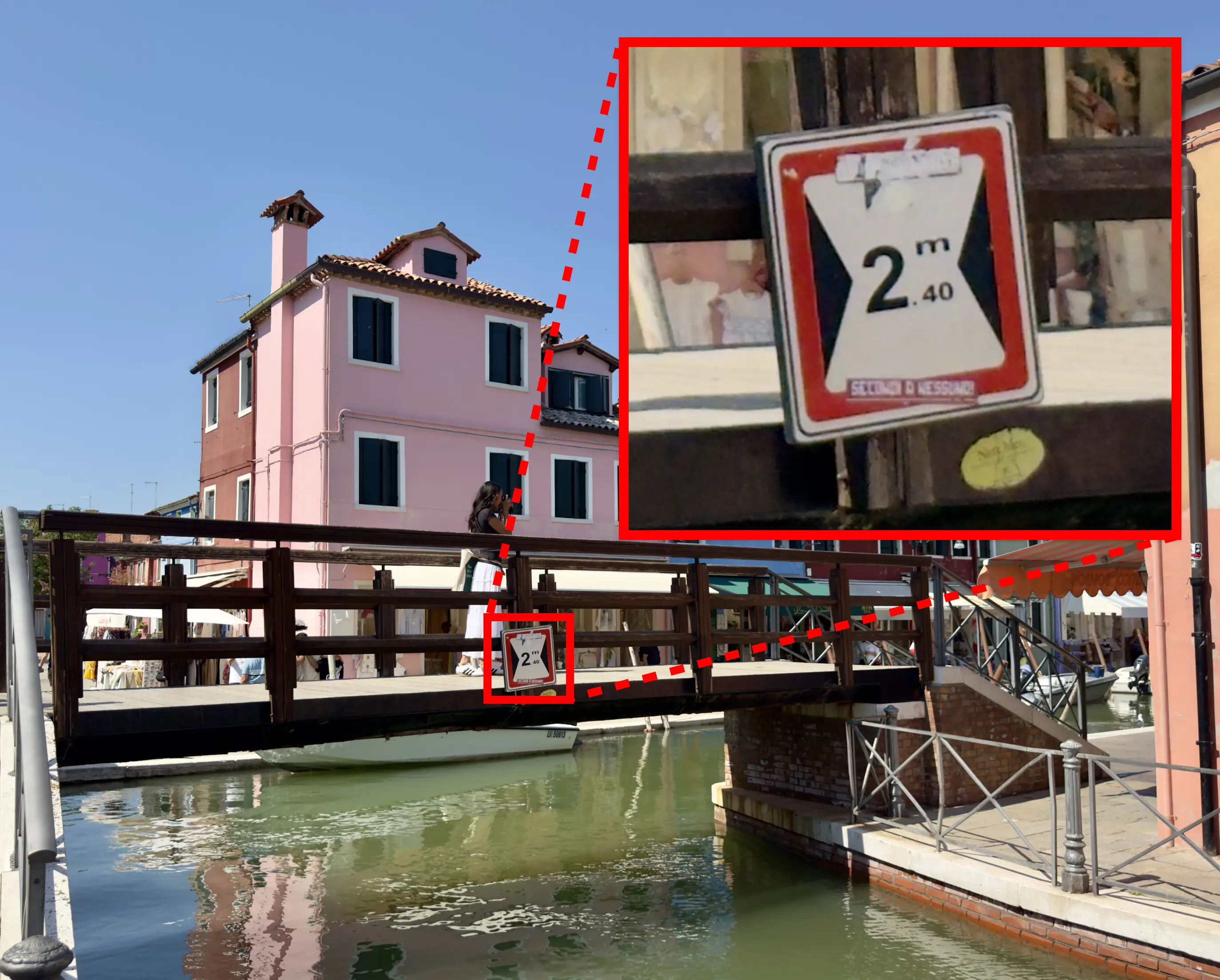 Farvannsskiltene er harmonisert i forhold til andre europeiske land. På bildet over ser du at en smal bro er merket i Venezia i Italia.