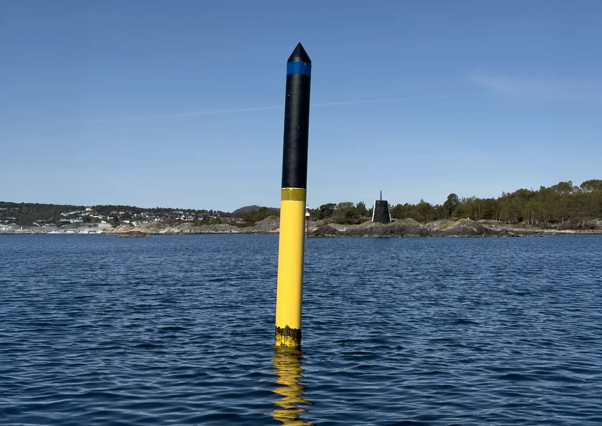 Kardinal nord gir informasjon om at det er trygt farvann nord for merket.