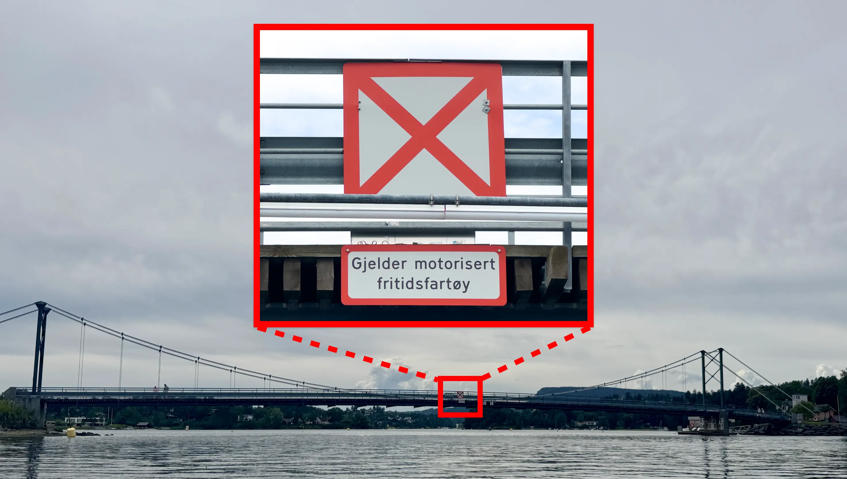 Fra eksemplet over ser vi for eksempel at det er forbudt for motoriserte fritidsfartøy å ferdes under broen.