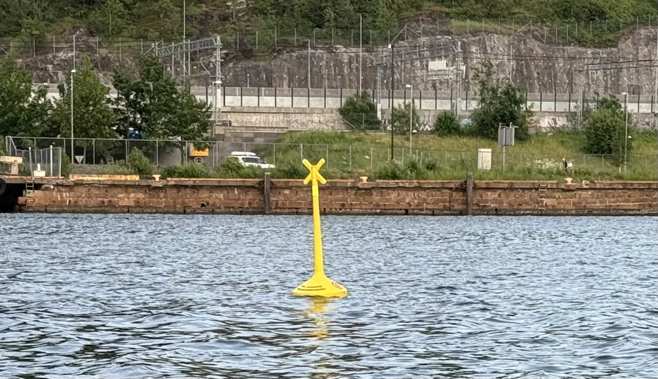 På bildet over ser vi en kabel som ligger på sjøbunnen. Kabelen er strømførende og har livsfarlig spenning. Det er derfor forbudt å ankre opp i området.