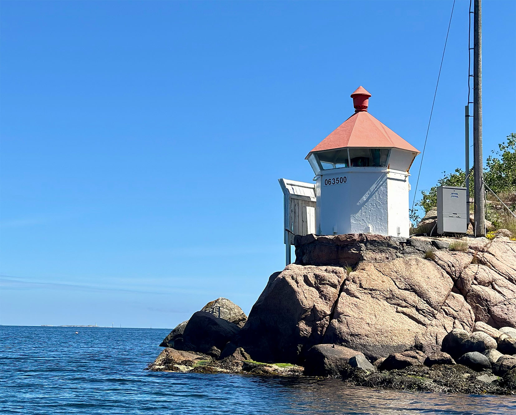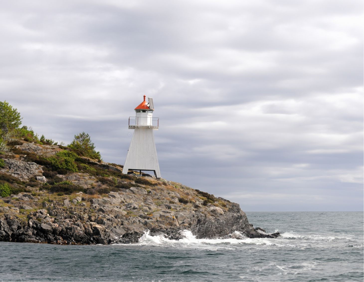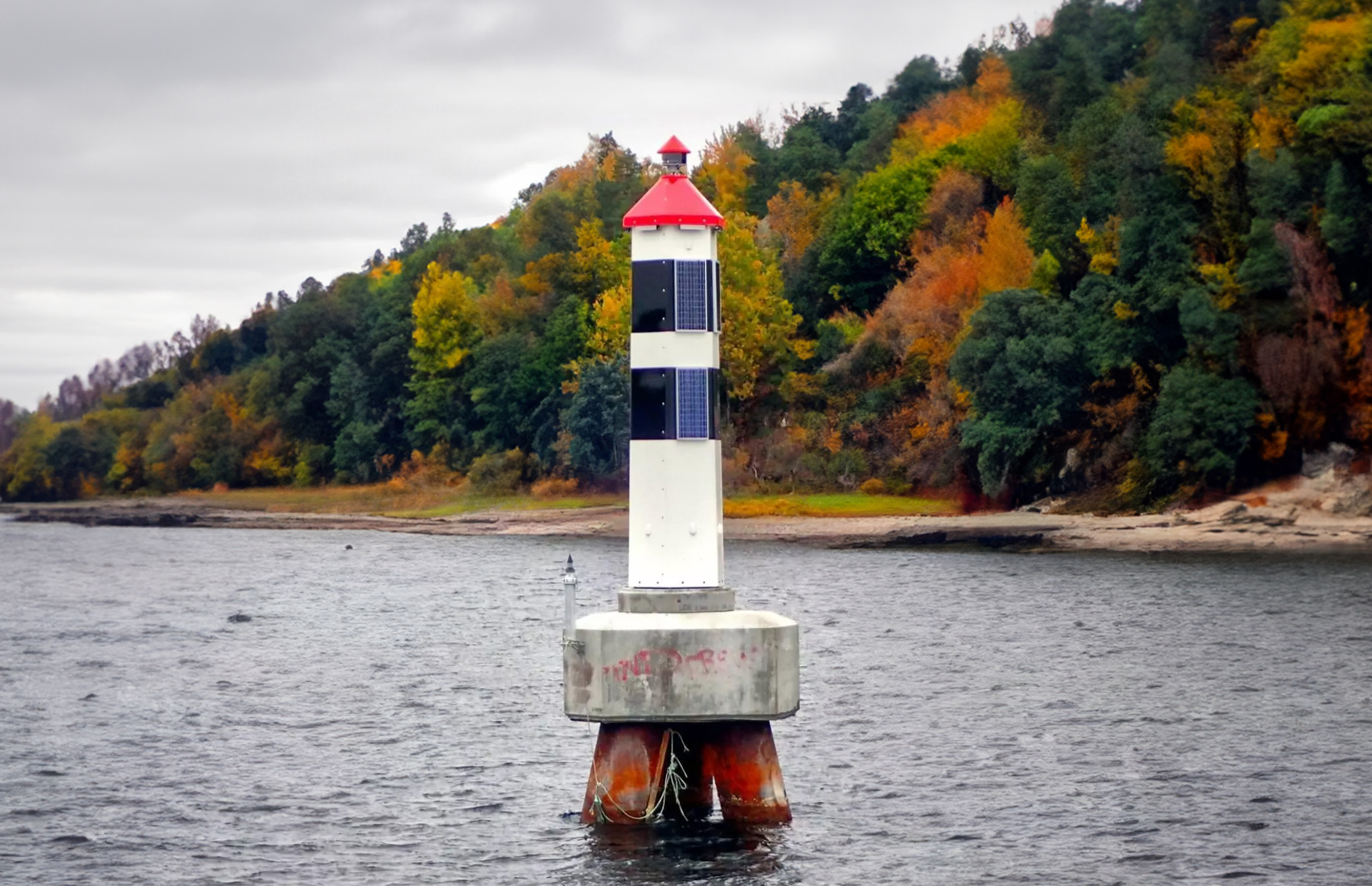 Rød - indikerer babord kant (venstre) til kanalen for fartøy som nærmer seg lyskilden